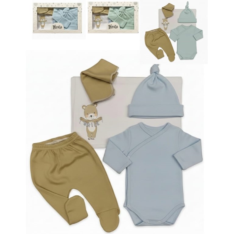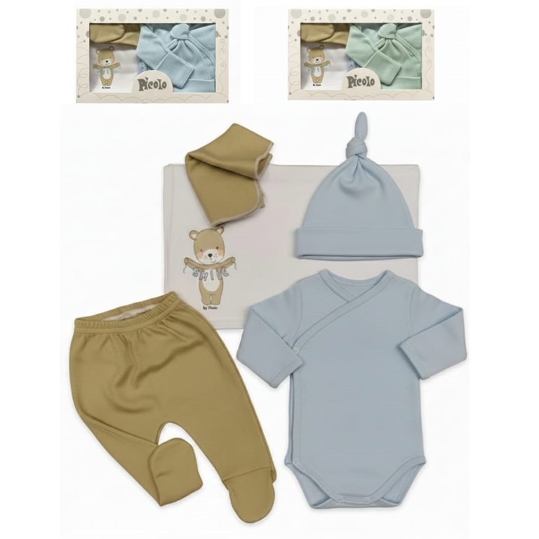 Ajuar 5u Body abto c/ gte - pantalon - gorro - mantilla doble - babita. Picolo