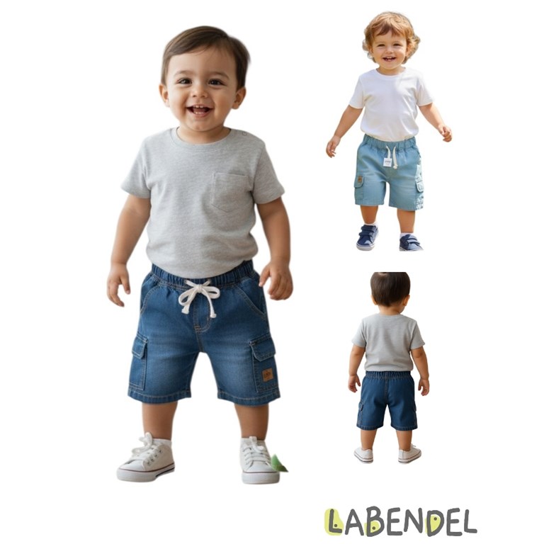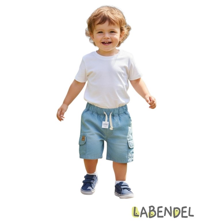 Bermuda jean con cordon cargo. Colores: Azul o celeste. Labendel