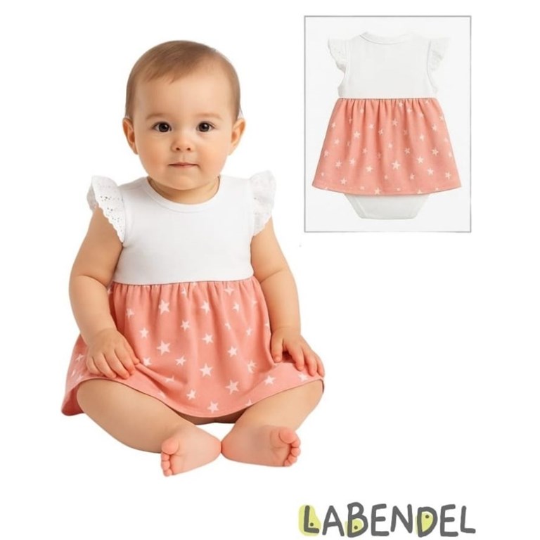 Body vestido manga corta color rosa con flores blancas para beba.Labendel