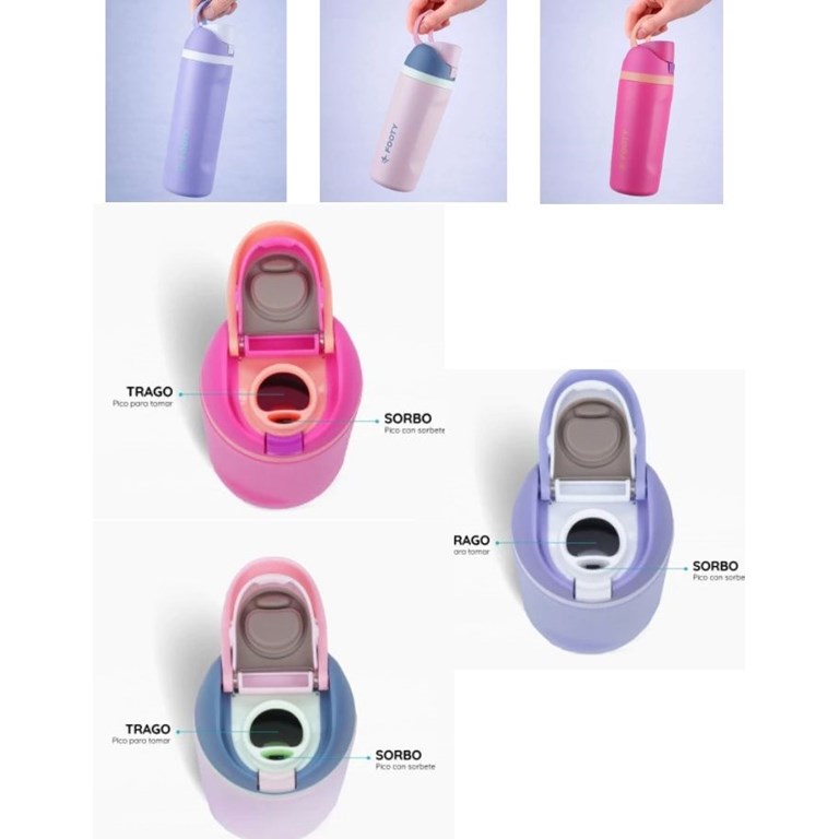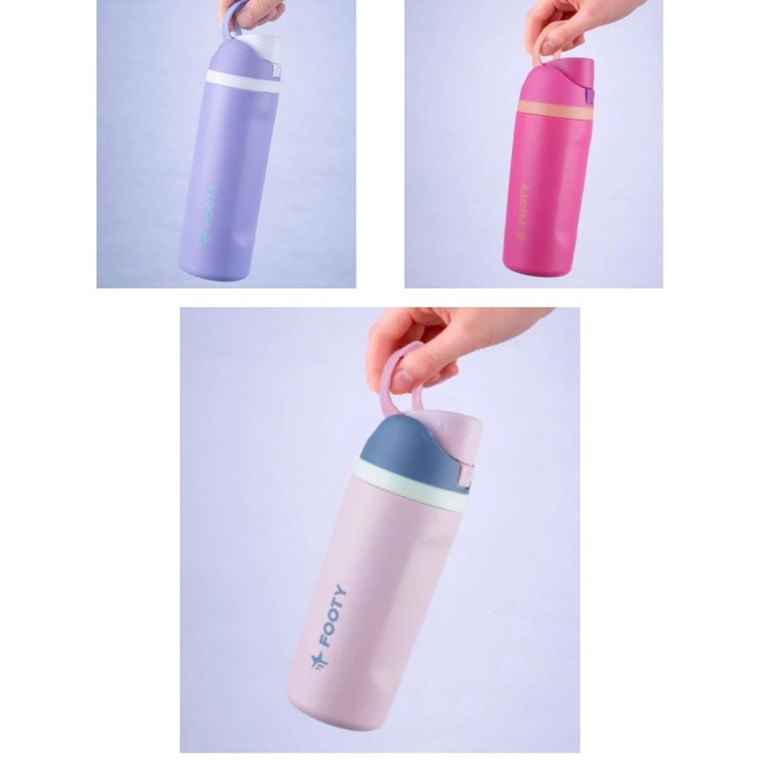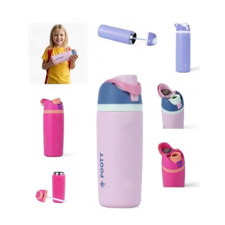 BOTELLA TERMICA DOBLE PARED CON PICO Y BOTON DE APERTURA 473 ML. FOOTY