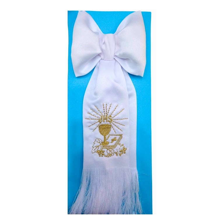 Brazal Bordado Blanco Cruz Y Copa Comunion