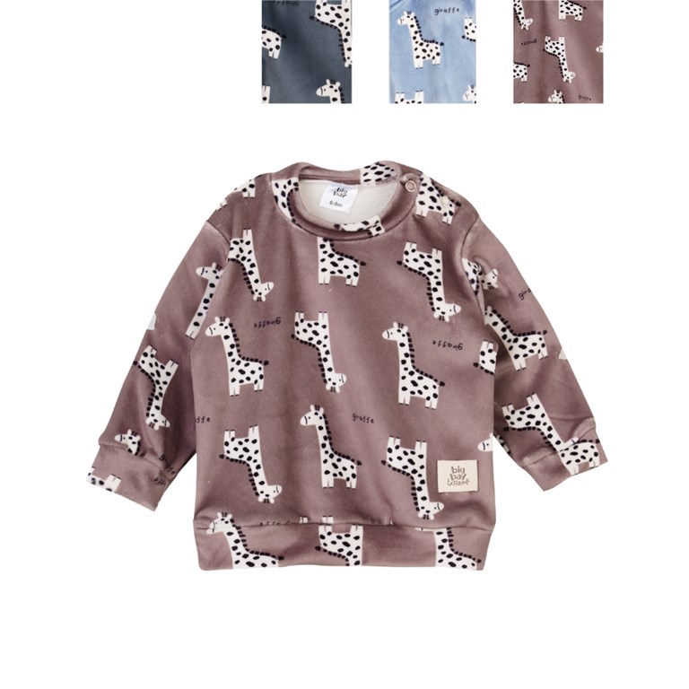 BUZO BEBE DE PLUSH ESTAMPADO JIRAFAS. BIG BAY
