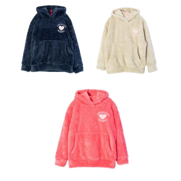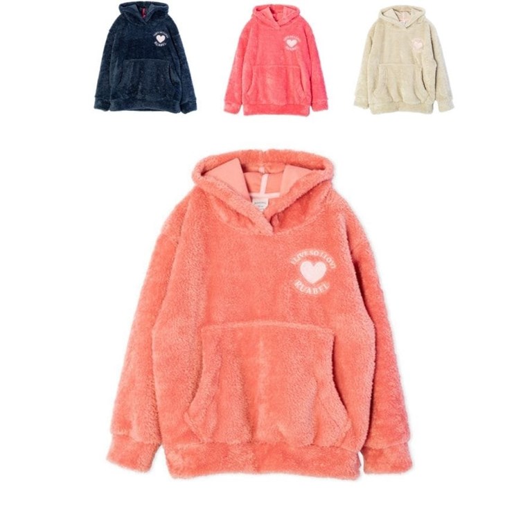 BUZO CON CAPUCHA BBA PELUDITO CON BORDADO CORAZON. PIEL. RUABEL