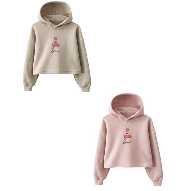 BUZO DE NENA CON CAPUCHA. ESTAMPA Y BORDADO 'LOVE'. BABY WAY