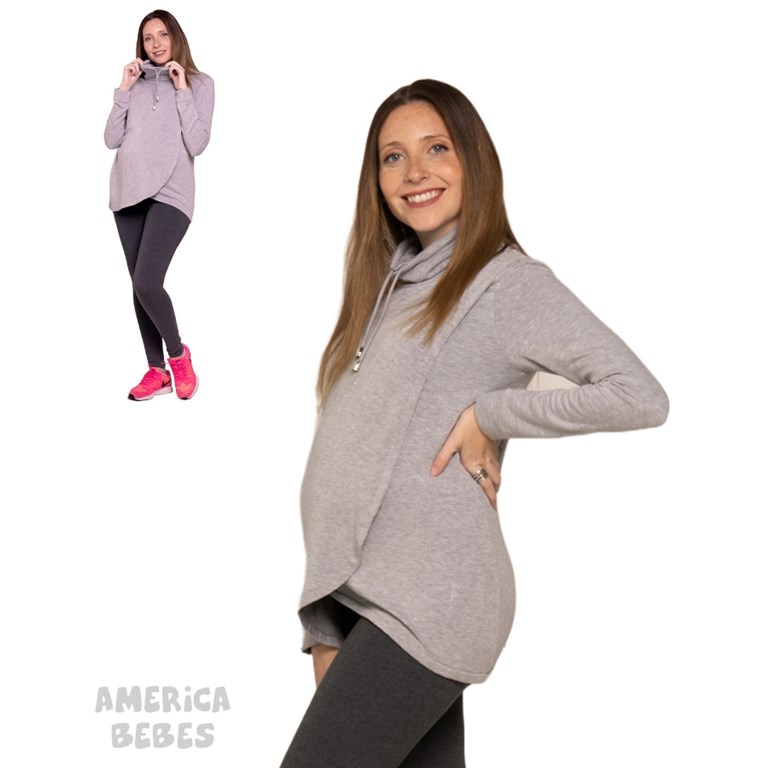 BUZO TELA ESMERILADA CON SISTEMA PARA AMAMANTAR CUELLO POLERA. QUE SERA
