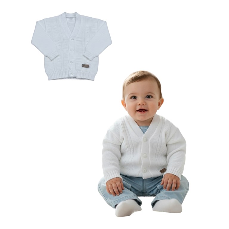 Cardigan de dralon c/torzadas blancos. Bautismo. CEO.