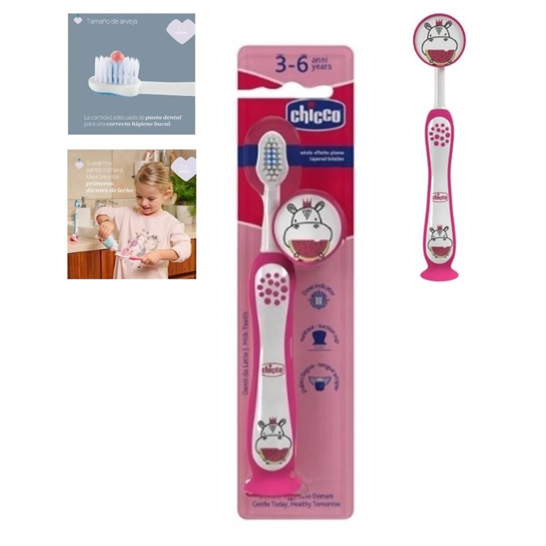 CEPILLO DE DIENTES CON TAPITA Y SOPAPA +3 AÑOS PARA NENA. CHICCO