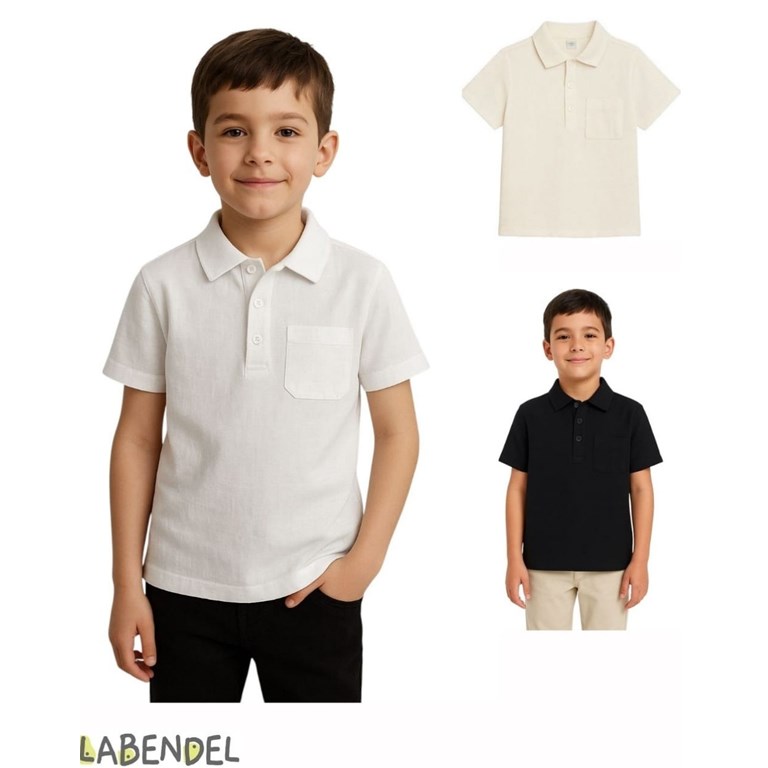 CHOMBA LINO MANGA CORTA CUELLO MAO. COLORES: BLANCO-NATURAL-NEGRO. LABENDEL