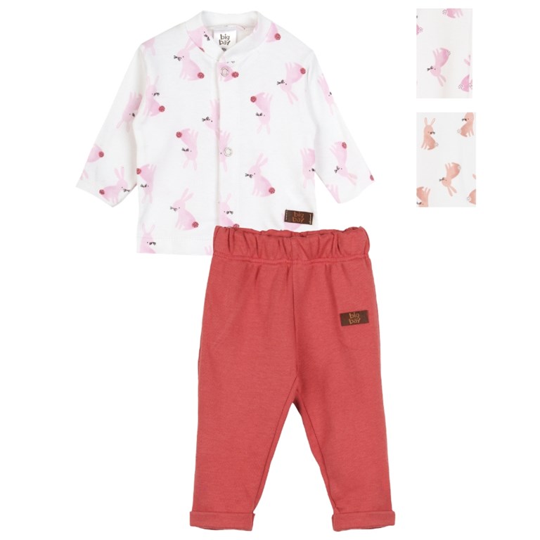 CONJUNTO BEBA SAQUITO ESTAMPADO CONEJOS + PANTALON LISO. BIG BAY