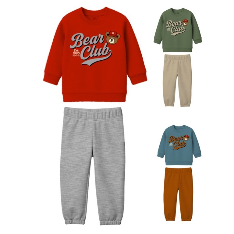 Conjunto bebe varón c/estampa bear club.Gepetto