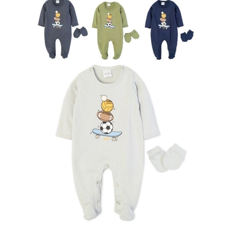 ENTERITO PARA BEBECON PIE ESTAMPA SKATE Y PELOTAS. RUABEL