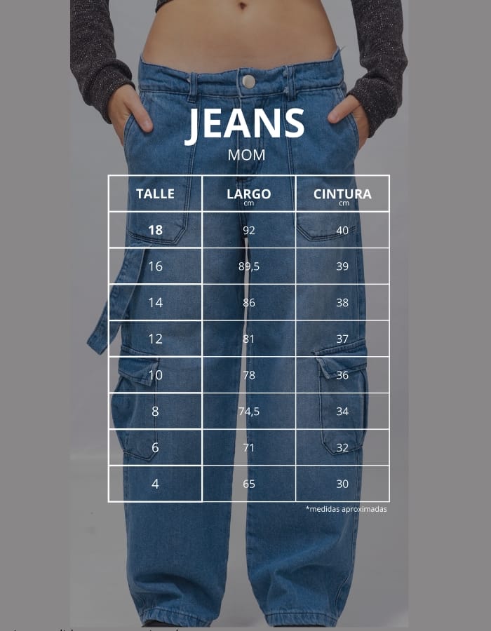 JEAN ESTILO MOM CON BOLSILLOS CARGO EN LOS COSTADOS, COLOR GRIS. OLIVIA