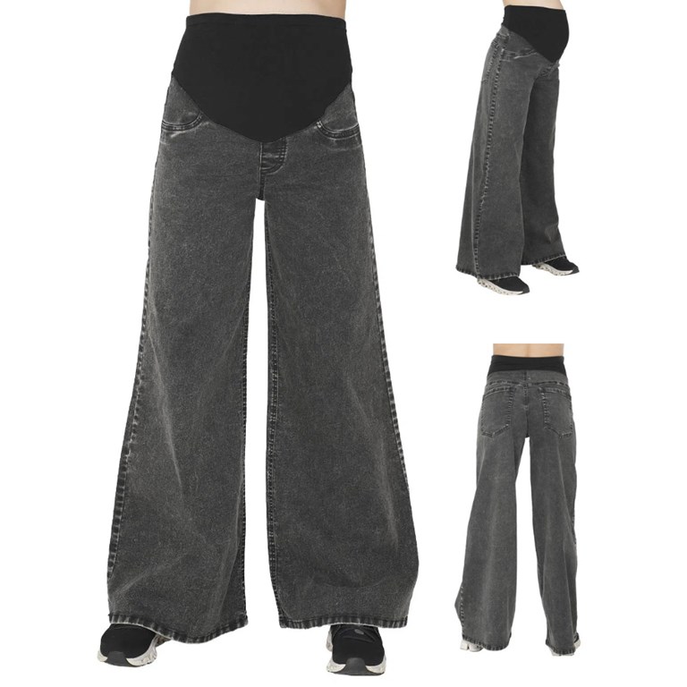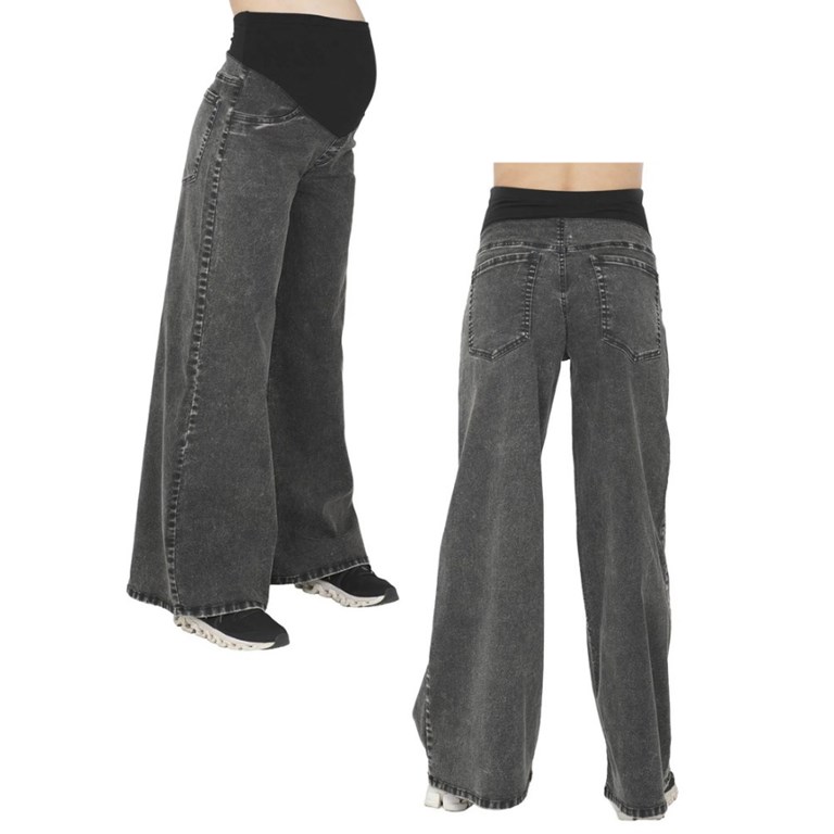 JEAN SUPER WIDE LAVADO GASTADO CON FAJA DE ALGODON ELASTIZADA EN PANZA. QUE SERA