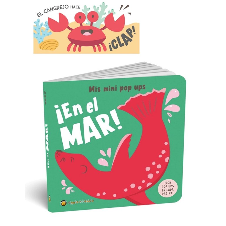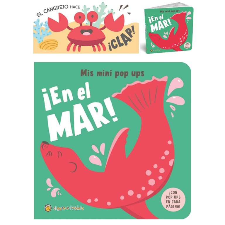 LIBRO CON MOVIMIENTOS POP-UPS DE ANIMALES DEL MAR. GATO DE HOJALATA. MED. 14 X 14 CM.