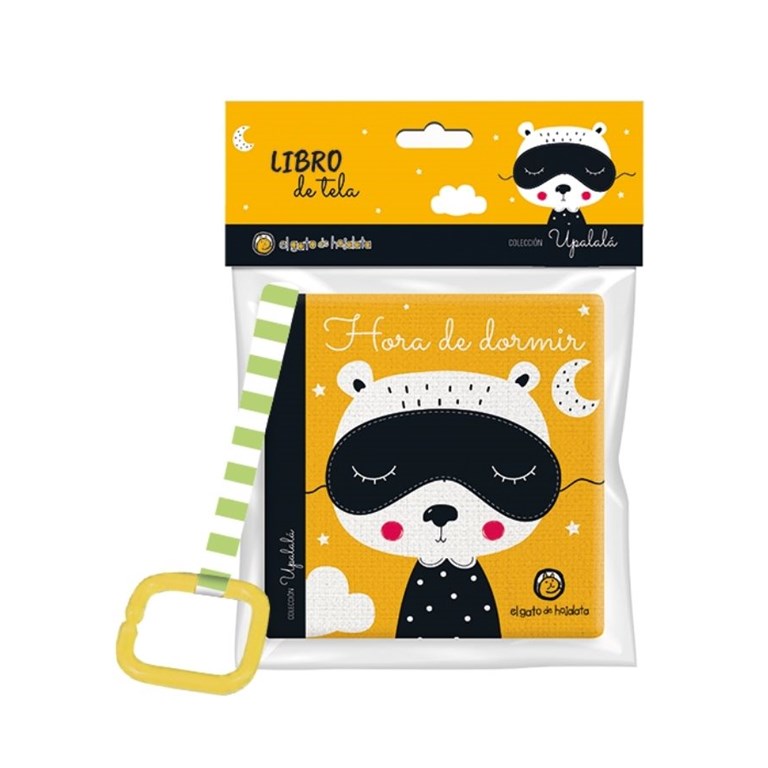 LIBRO DE TELA ESTAMPADO ANIMALITOS. GATO DE HOJALATA. MED 15 X 15 CM.