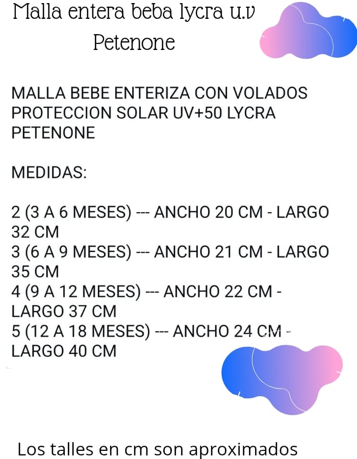 Malla beba entera estampada. Colores surtidos. Petenone.
