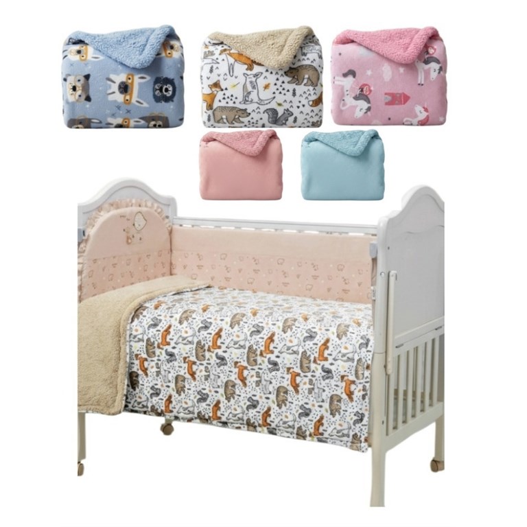 Manta (Viene estampada o lisa) tela edredon con cordeito importada. Medidas: 110 x 150cm. Colores lisas y estampadas Unisex, nena y varon.