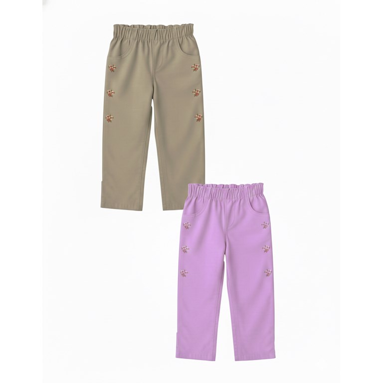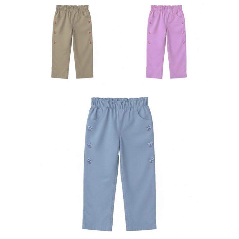 Pantalón beba nena color con florcitas bordadas.Gepetto