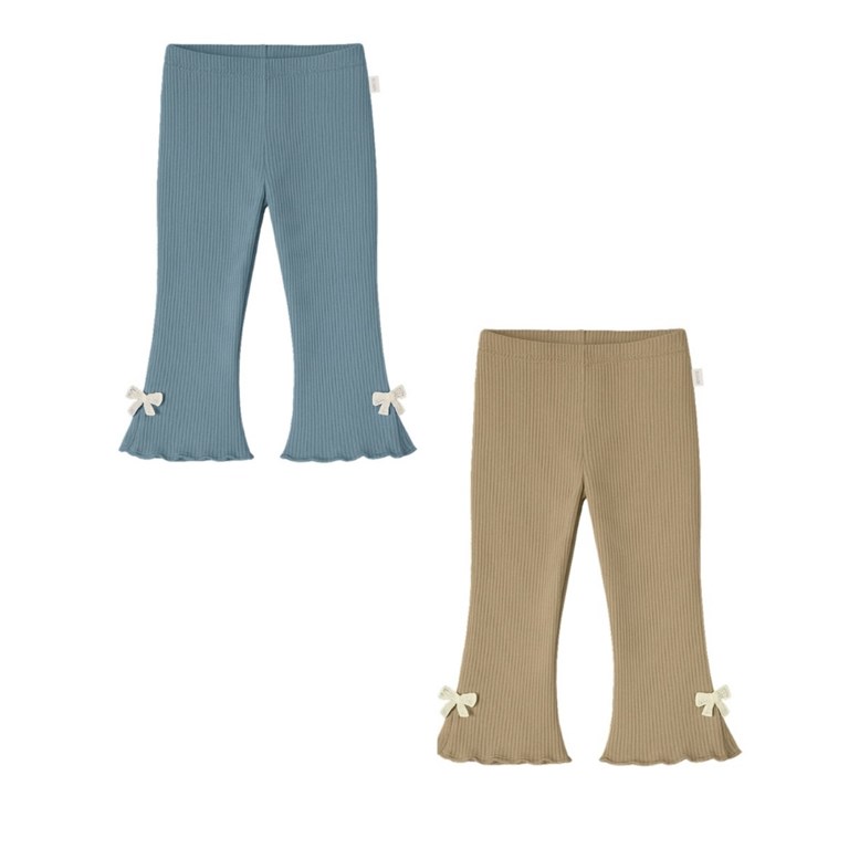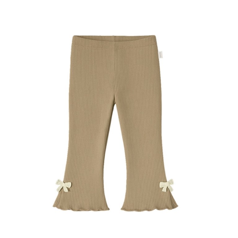 Pantalon beba nena morley con tajos laterales y moñitos de puntilla.Gepetto