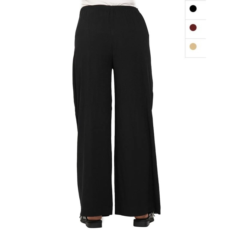 Pantalon lino elastizado wide leg con pinzas y faja elastizada en la cintura.Que sera