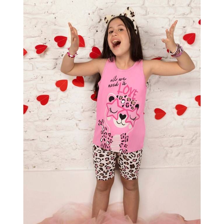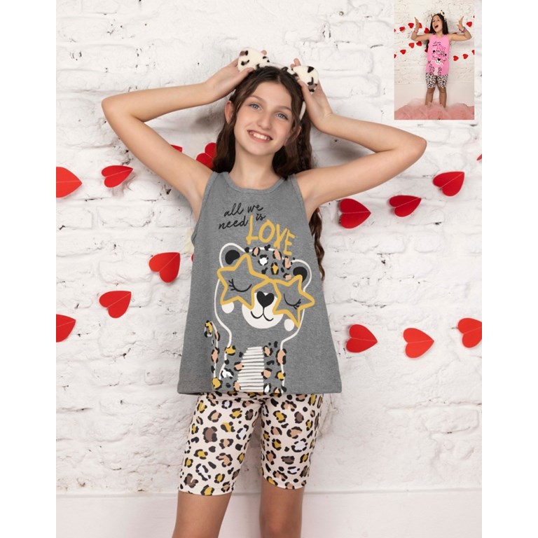 Pijama con casaca de jersey y calza estampa gatito animal print