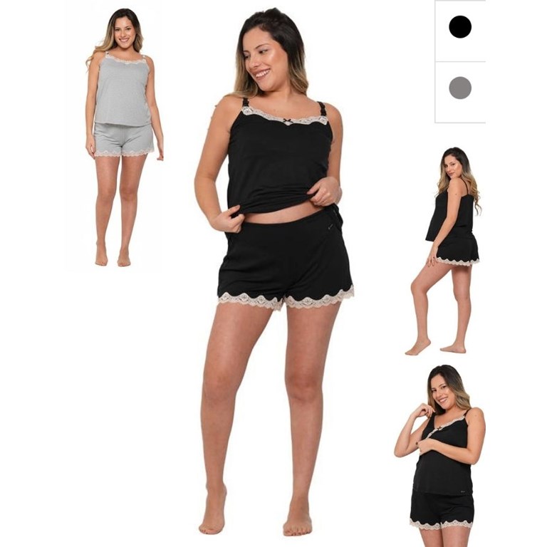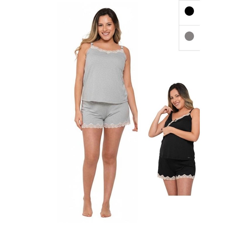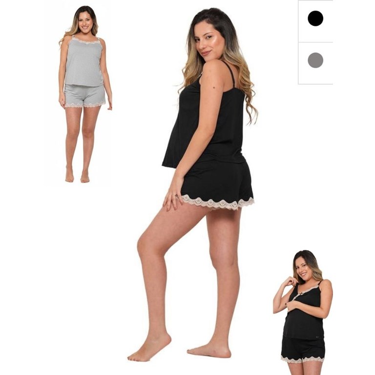 Pijama corto de modal con puntilla y sistema para amamantar.Que sera
