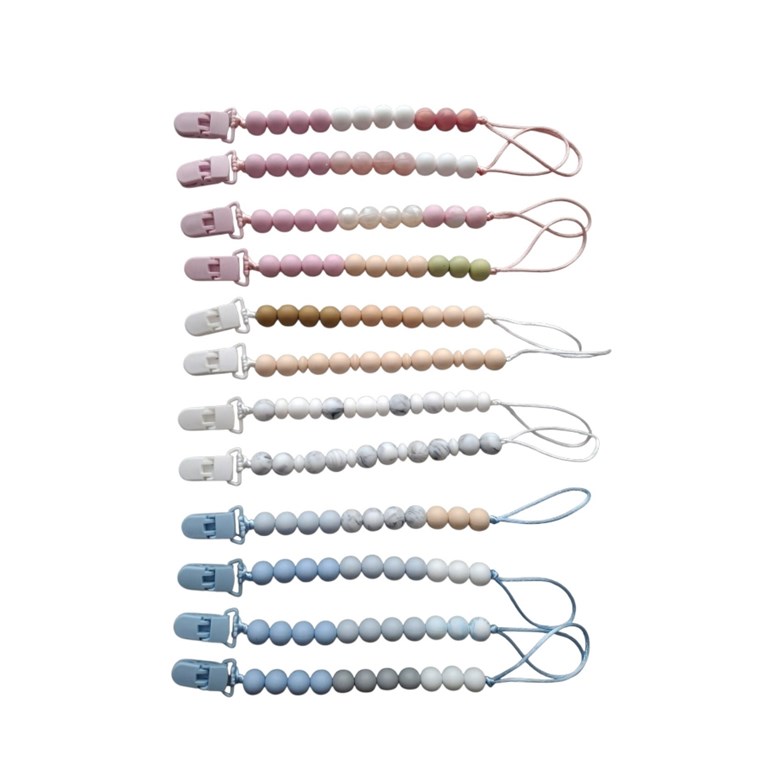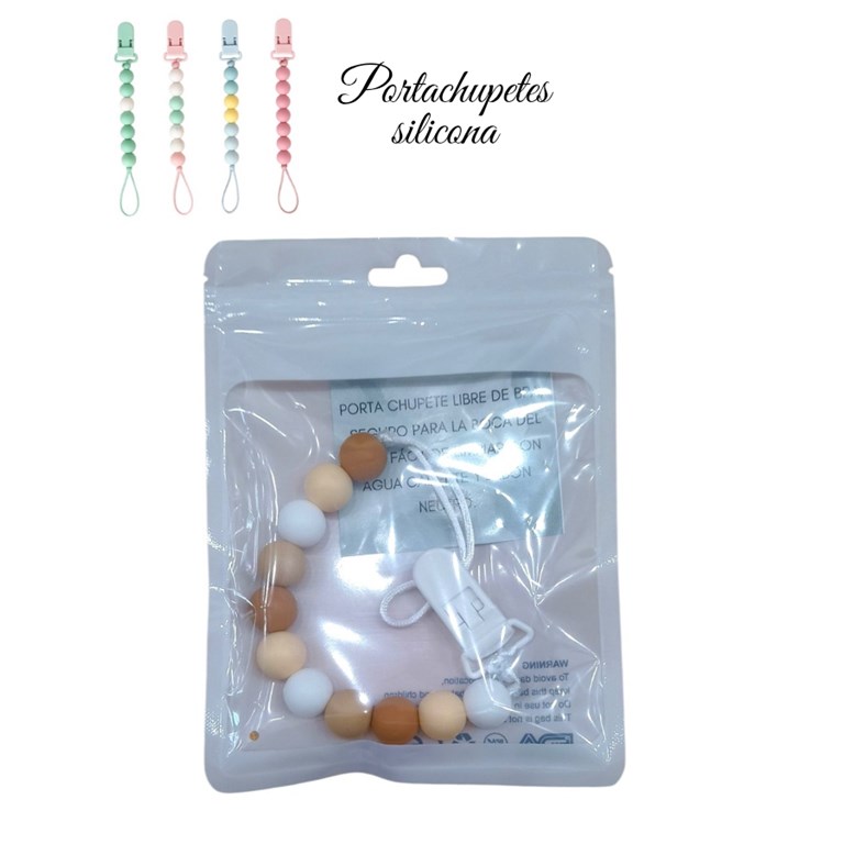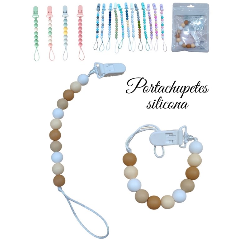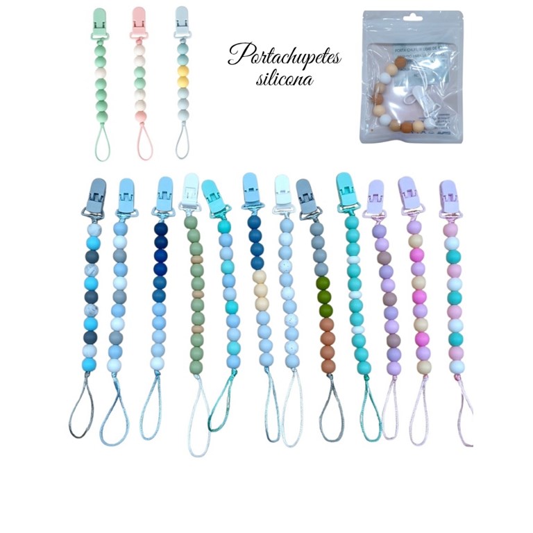 Portachupete silicona importado de 11 bolitas con ganchos de plastico. Colores: Unisex-Varon-Nena. Labendel