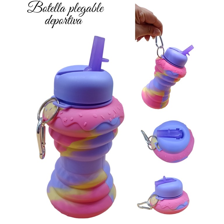 PROMO 40% OFF: LILA BOTELLA SILICONA VASO PLEGABLE DEPORTIVA FORMA DONA