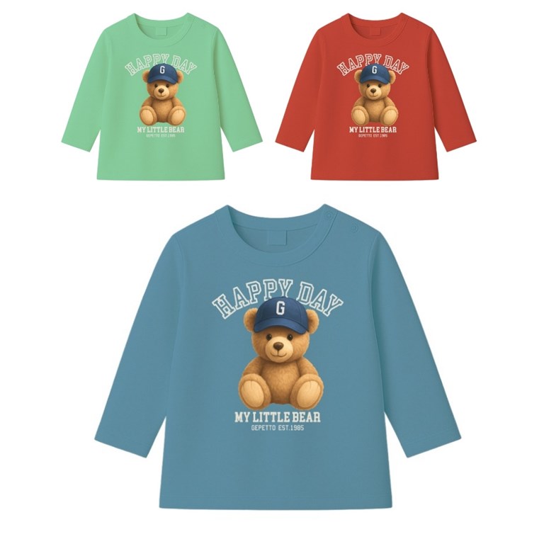 Remera bebe varón c/estampa osito cap dtf.Gepetto