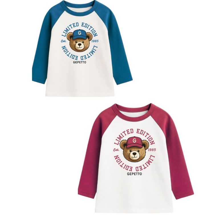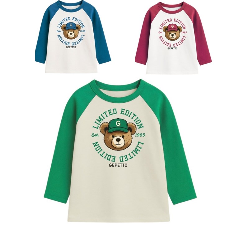 Remera bebe varón ranglan c/estampa oso.Gepetto
