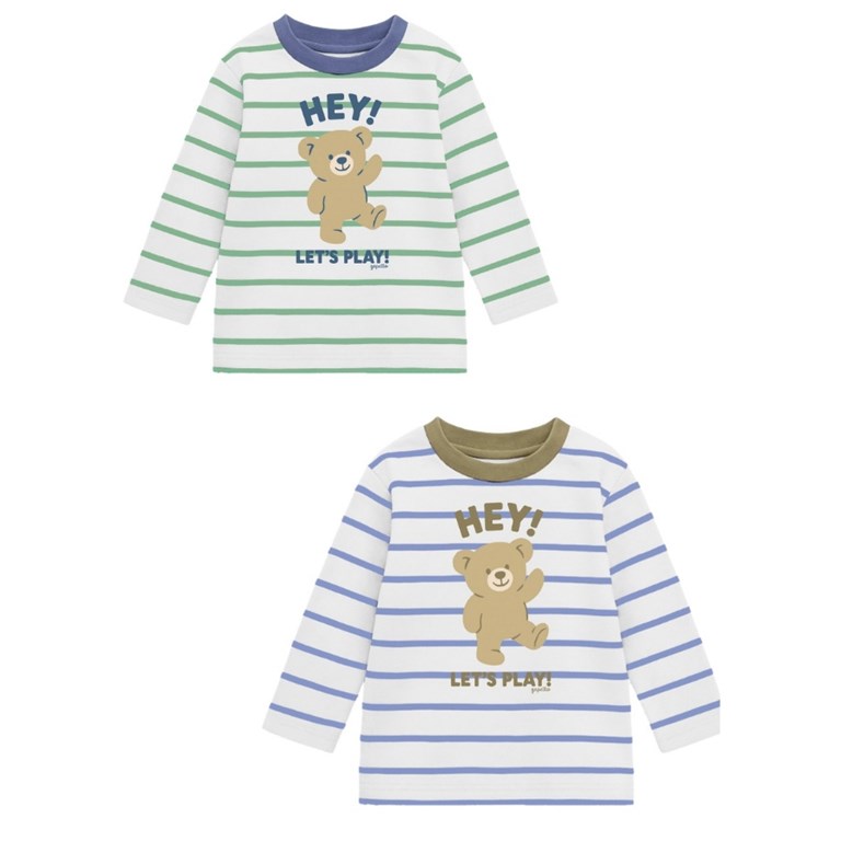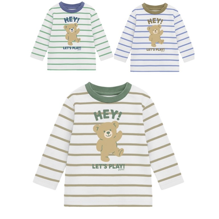 Remera bebe varón rayada con estampa osito.Gepetto