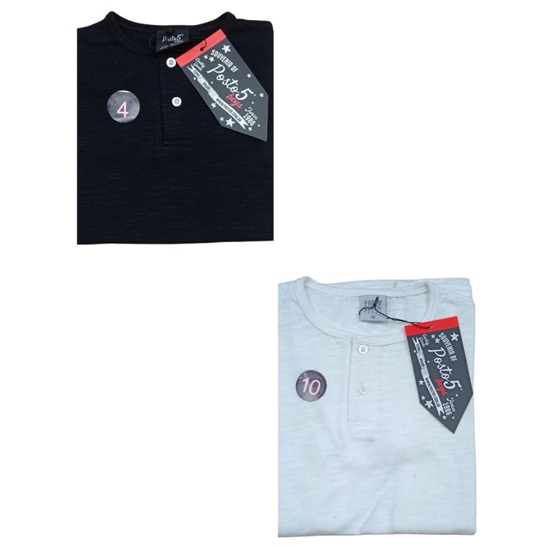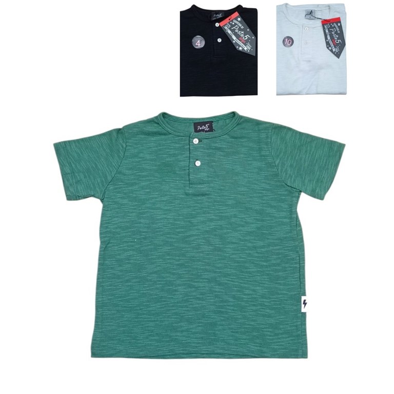 Remera de nene manga corta en algodon cuello mao lisa con botones. Posto