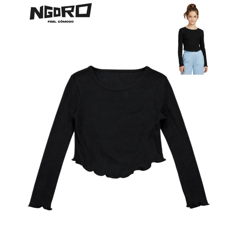 REMERA MANGA LARGA NENA MORLEY EN PICO. NGORO