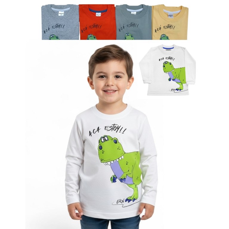 REMERA MANGA LARGA PARA BEBE ESTAMPA DINOSAURIO. GRUNY