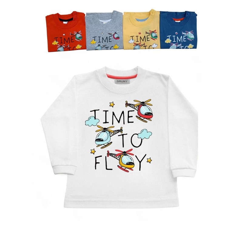 REMERA MANGA LARGA PARA BEBE ESTAMPA ELICOPTEROS. GRUNY
