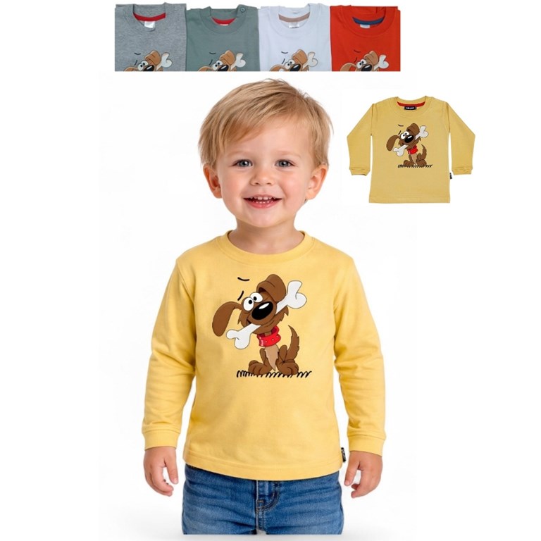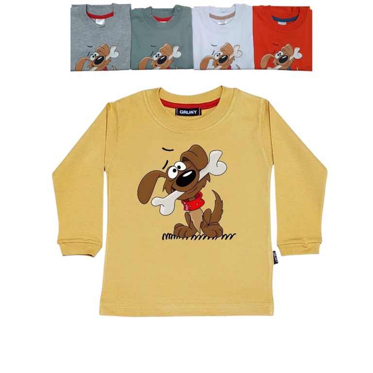 REMERA MANGA LARGA PARA BEBE ESTAMPA PERRITO CON HUESO. GRUNY