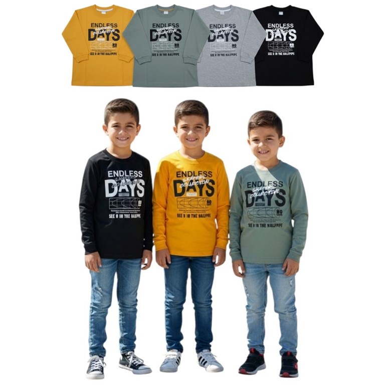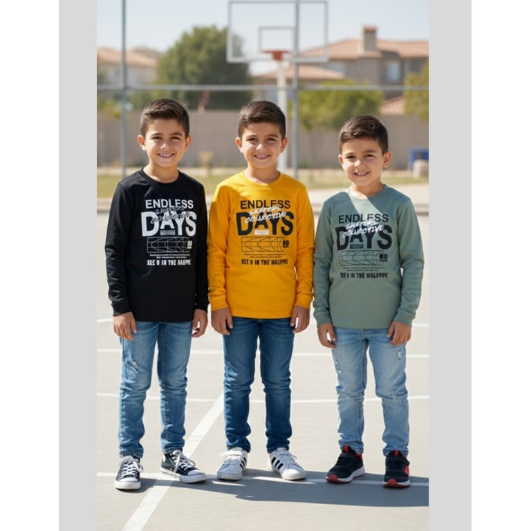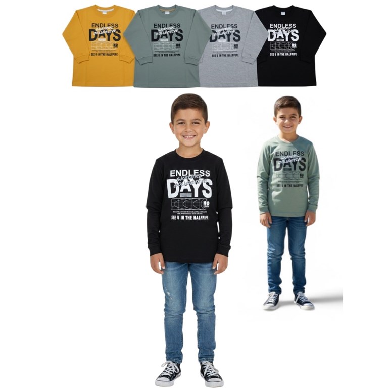 REMERA MANGA LARGA PARA NENE, ESTAMPA 'ENDLESS DAYS'. GRUNY