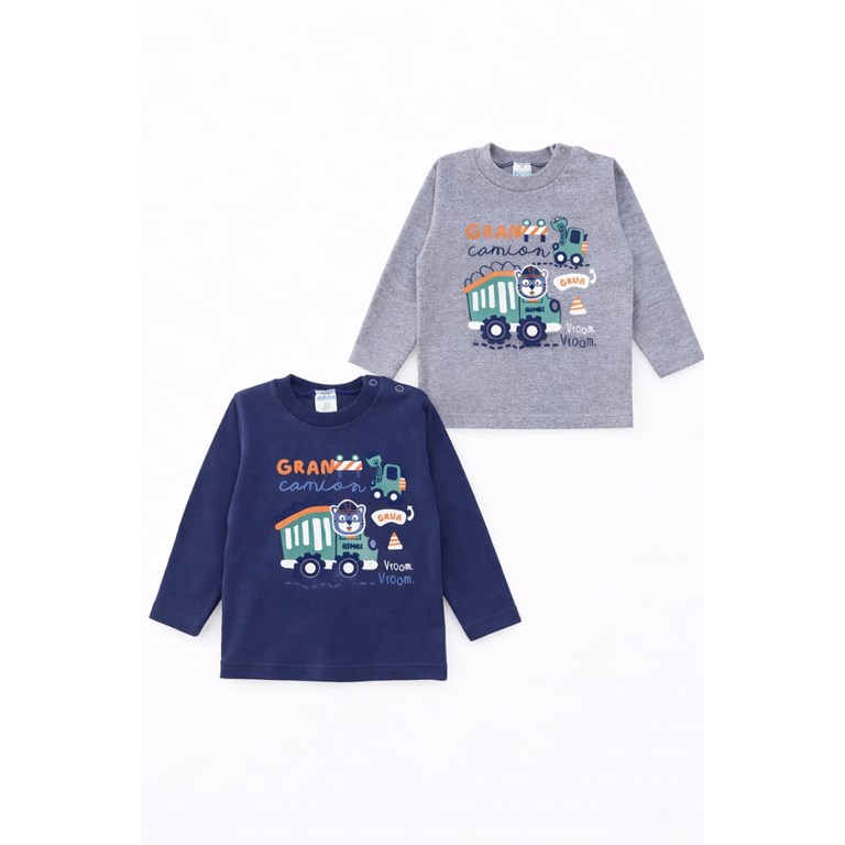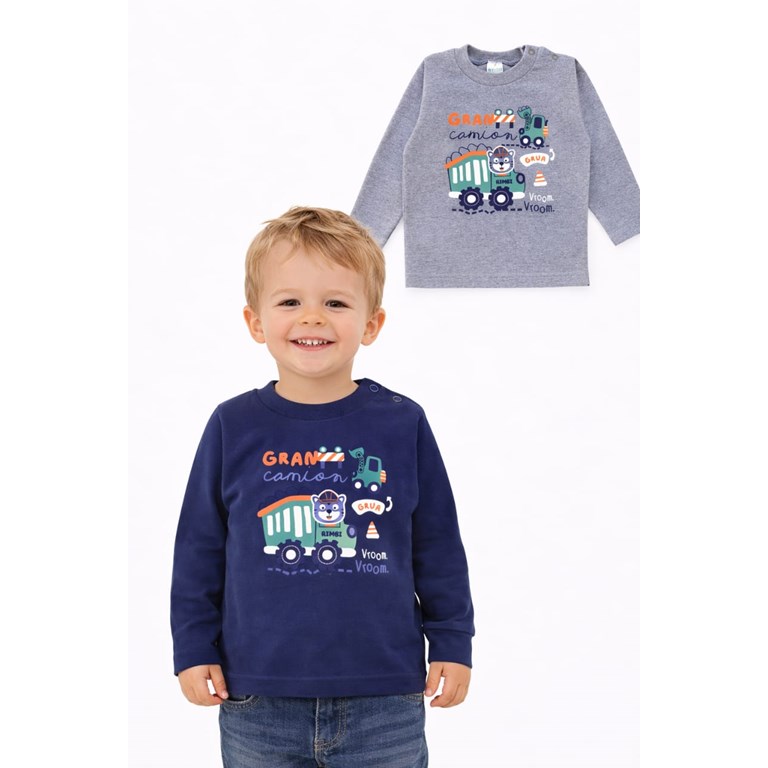 Remera manga larga, estampa Grúa camion, para bebe. Rimbi