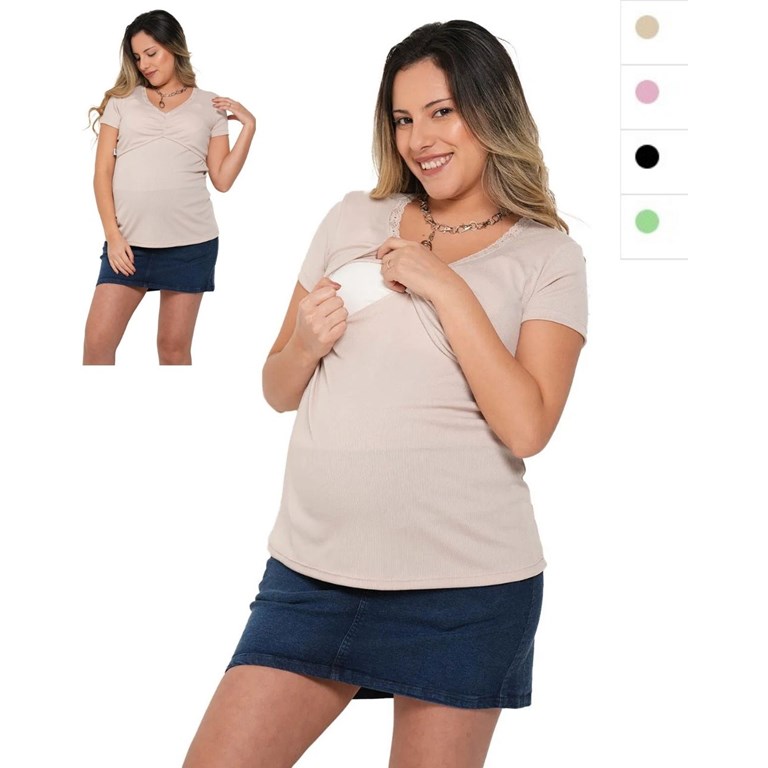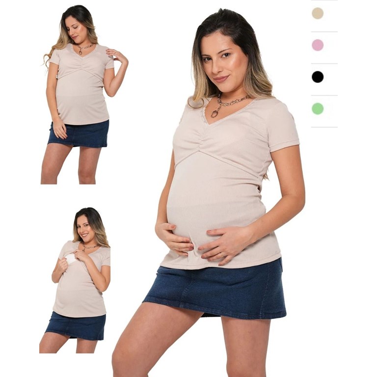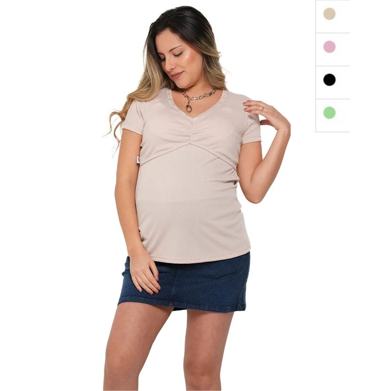 Remera micro morley con puntilla y frunce en busto con sistema para amamantar.Que sera
