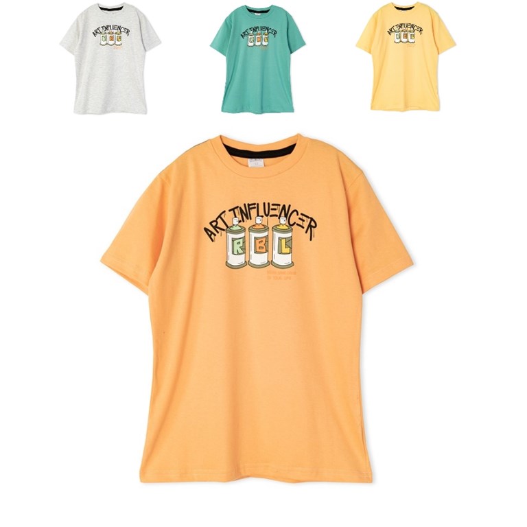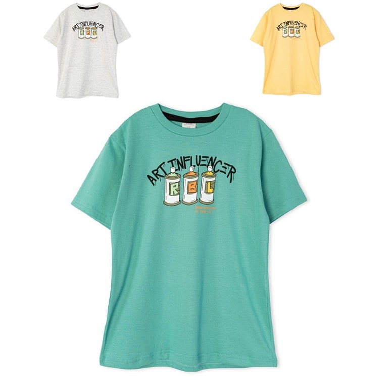 Remera msanga corta de nene con estampa 'Art Influencer'. Ruabel