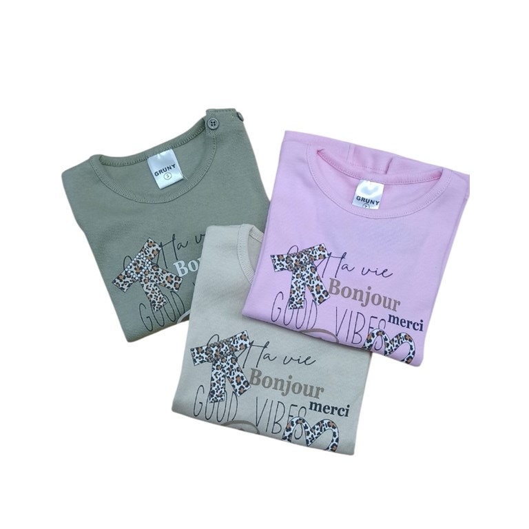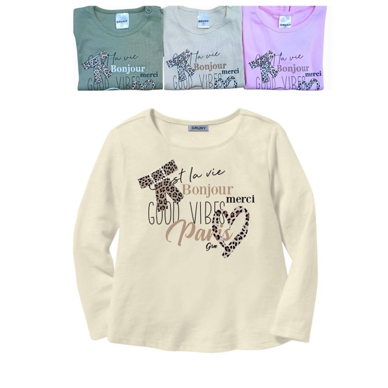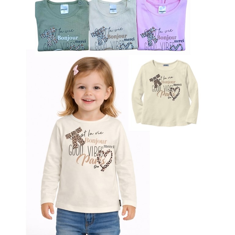 REMERA PARA BEBA MANGA LARGA ESTAMPA 'BOUNJOUR PARIS'. GRUNY
