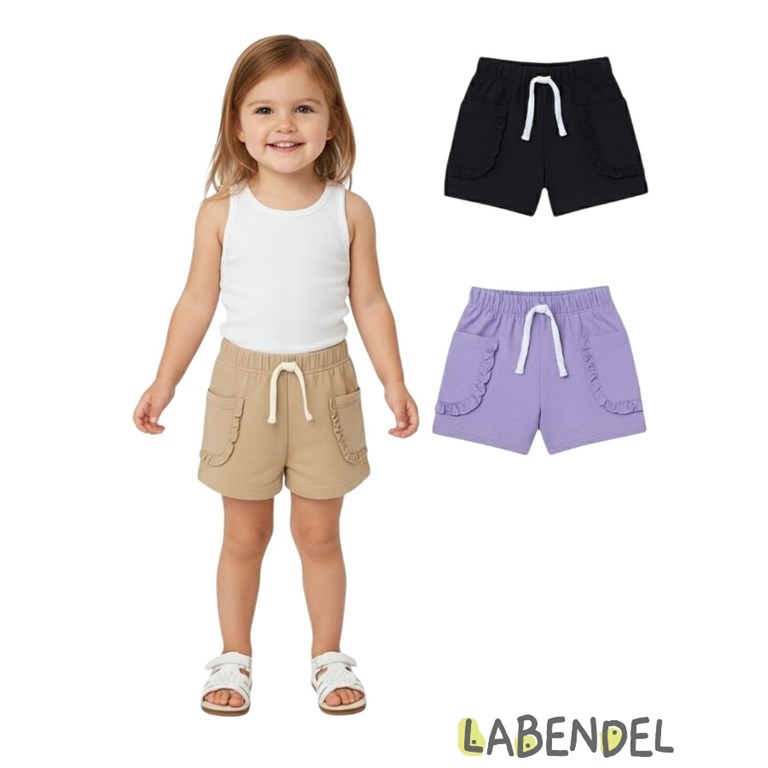 Short rustico beba con volados en bolsillos. Colores: Negro - Lila - Beige. Labendel