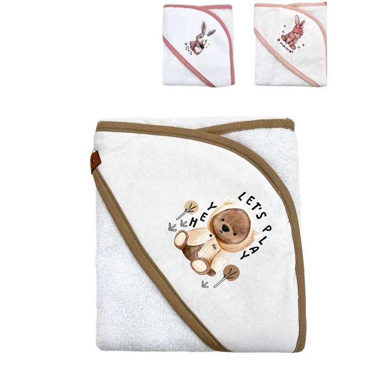 Toallon con capucha estampada. Tela Toalla. Colores surtidos. Pilim